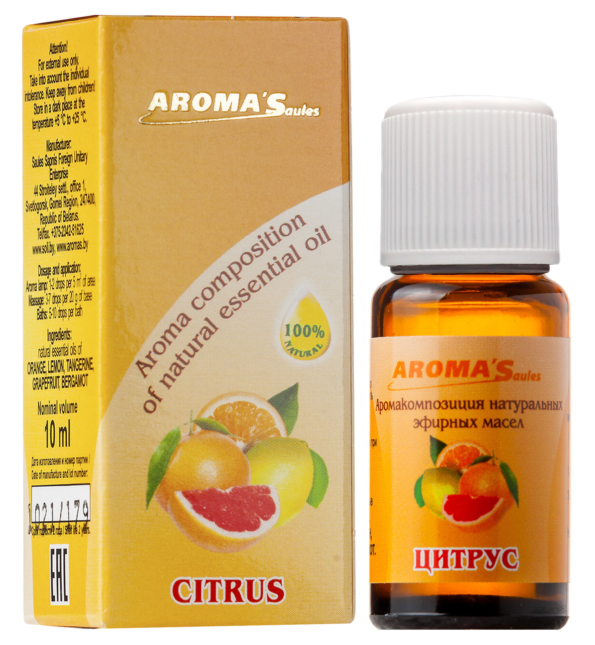 ЦИТРУС аромакомпозиция натуральных эфирных масел, 10мл