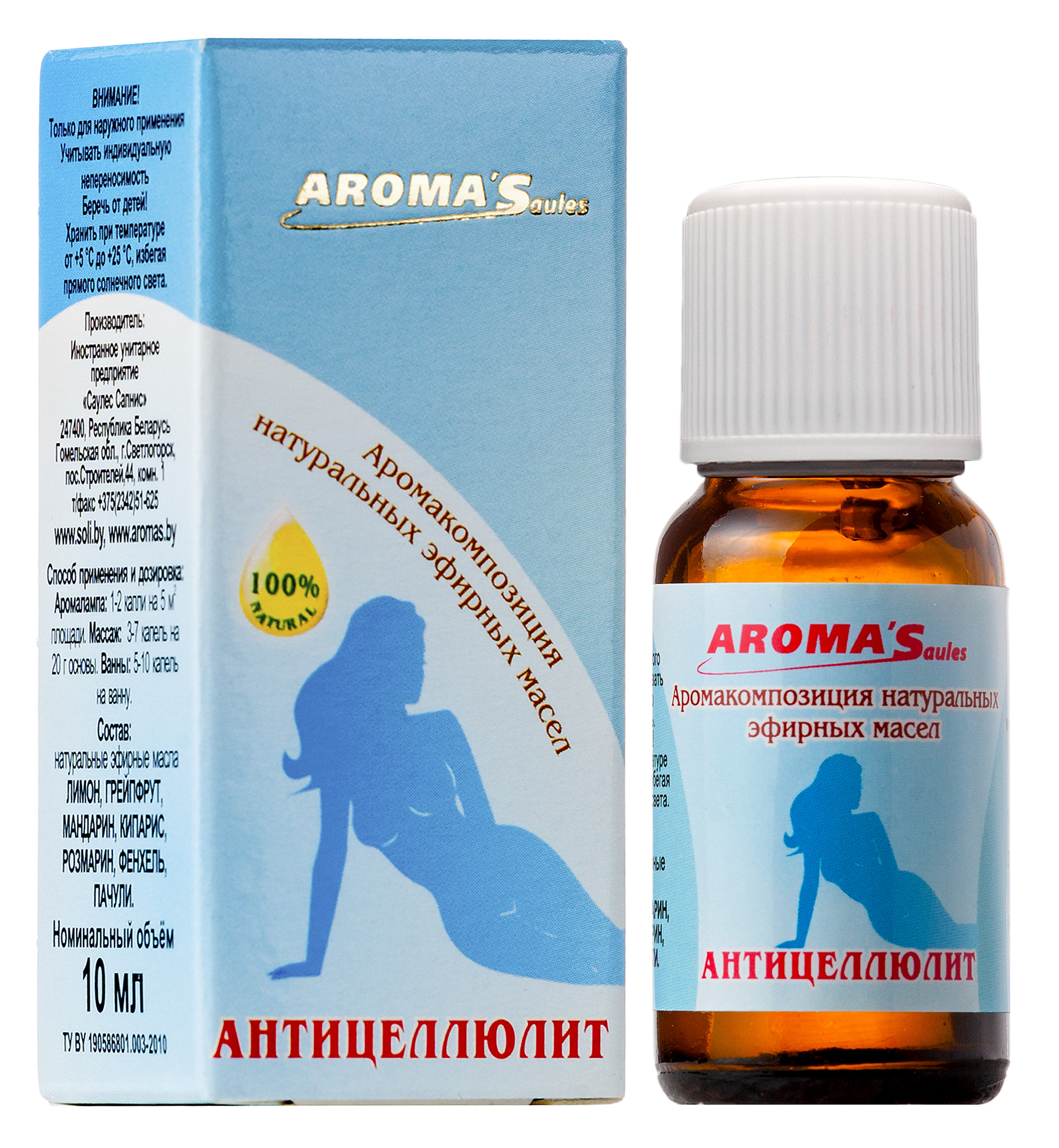 АНТИЦЕЛЛЮЛИТ аромакомпозиция натуральных эфирных масел, 10 мл