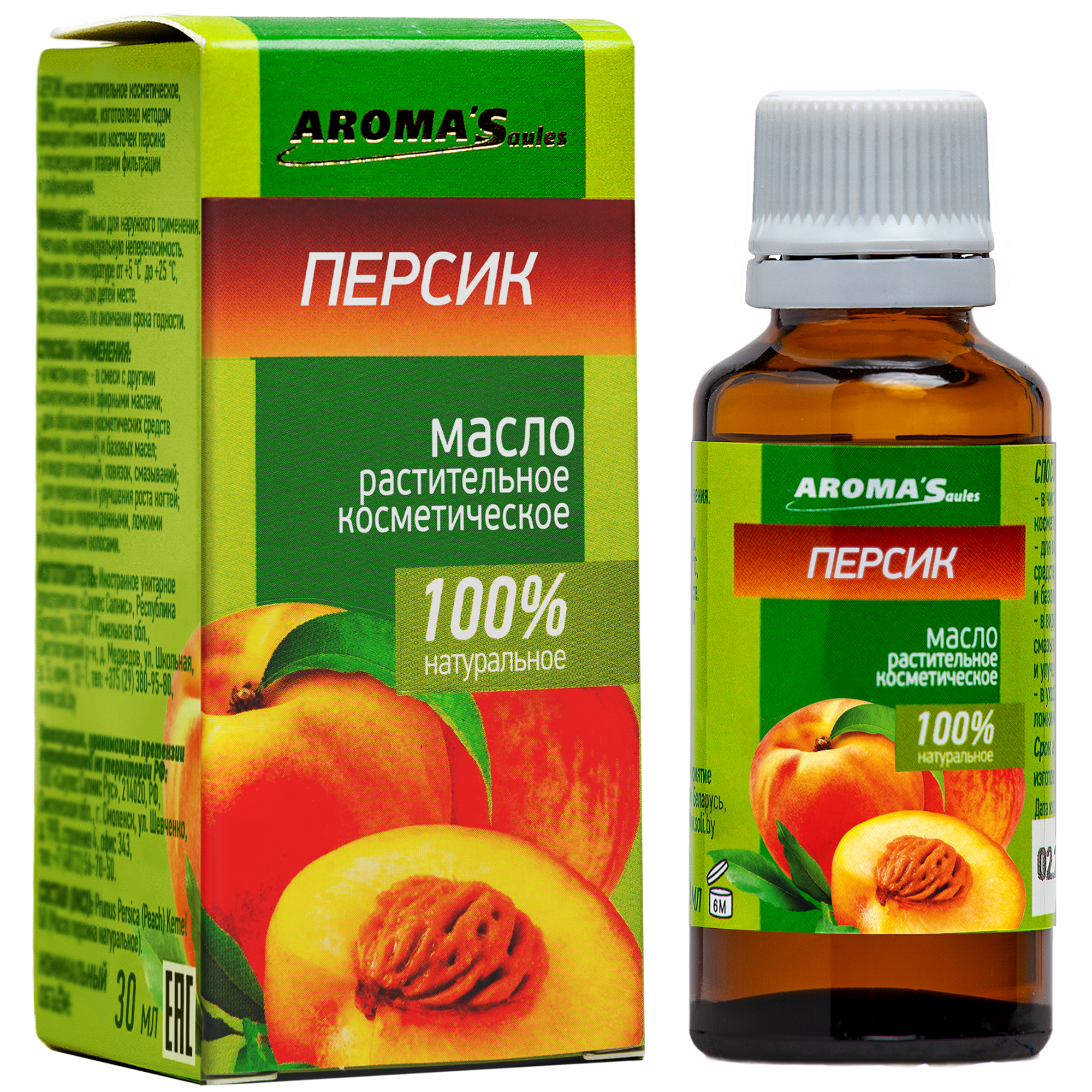 Состав: натуральное масло персика (Prunus Persica). Не содержит красителей, ароматизаторов и консервантов.