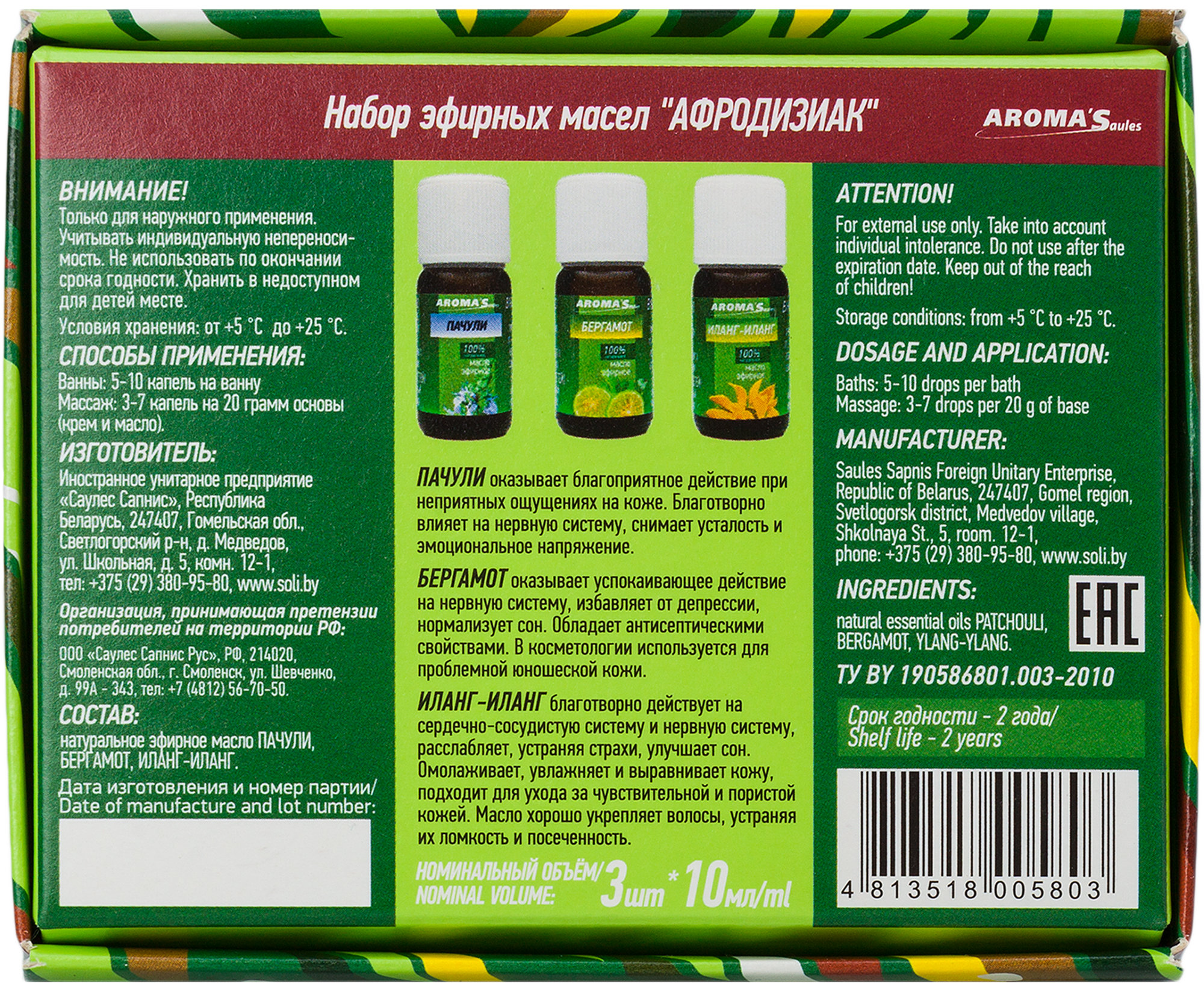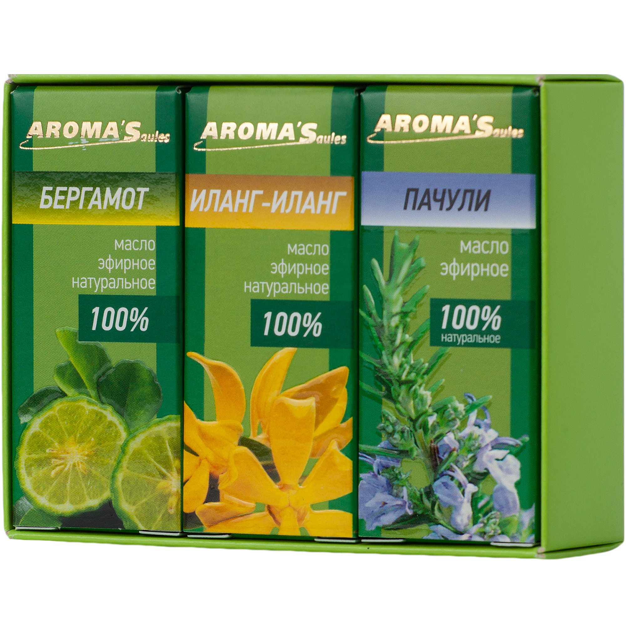 Набор состоит из эфирных масел Бергамота, Иланг-иланга, Пачули.