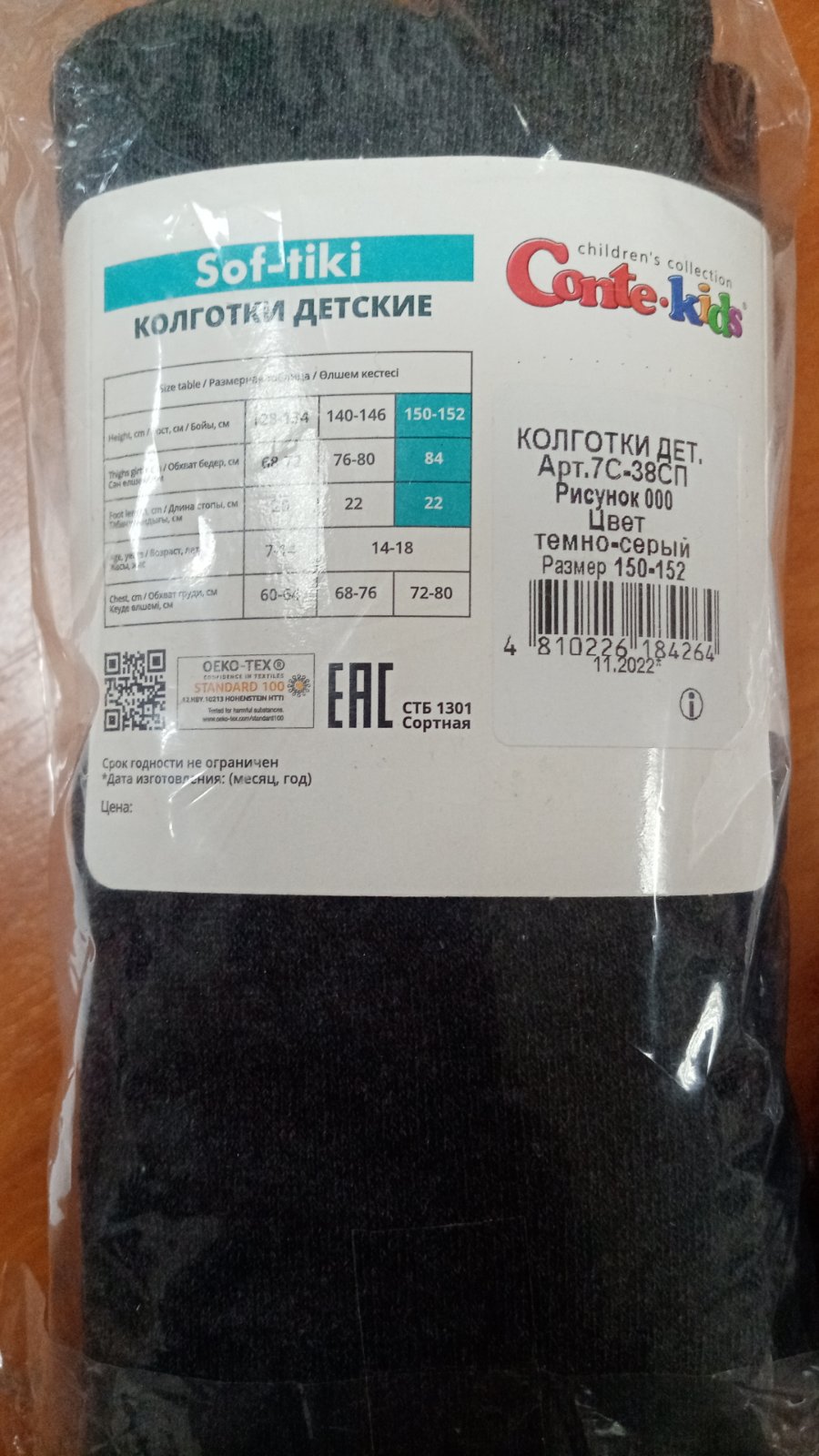 Колготки детские Sof-tiki, темно-серый, размер 150-152