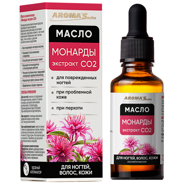 Масло косметическое «Монарды экстракт СО2» является природным средством, обладающим сильными противовоспалительными, антисептическими и антиоксидантными свойствами. Эффективно как самостоятельное средство, так и в комплексной терапии, при повреждении ногтей, для проблемной и возрастной кожи, а также в уходе за волосами и кожей головы.