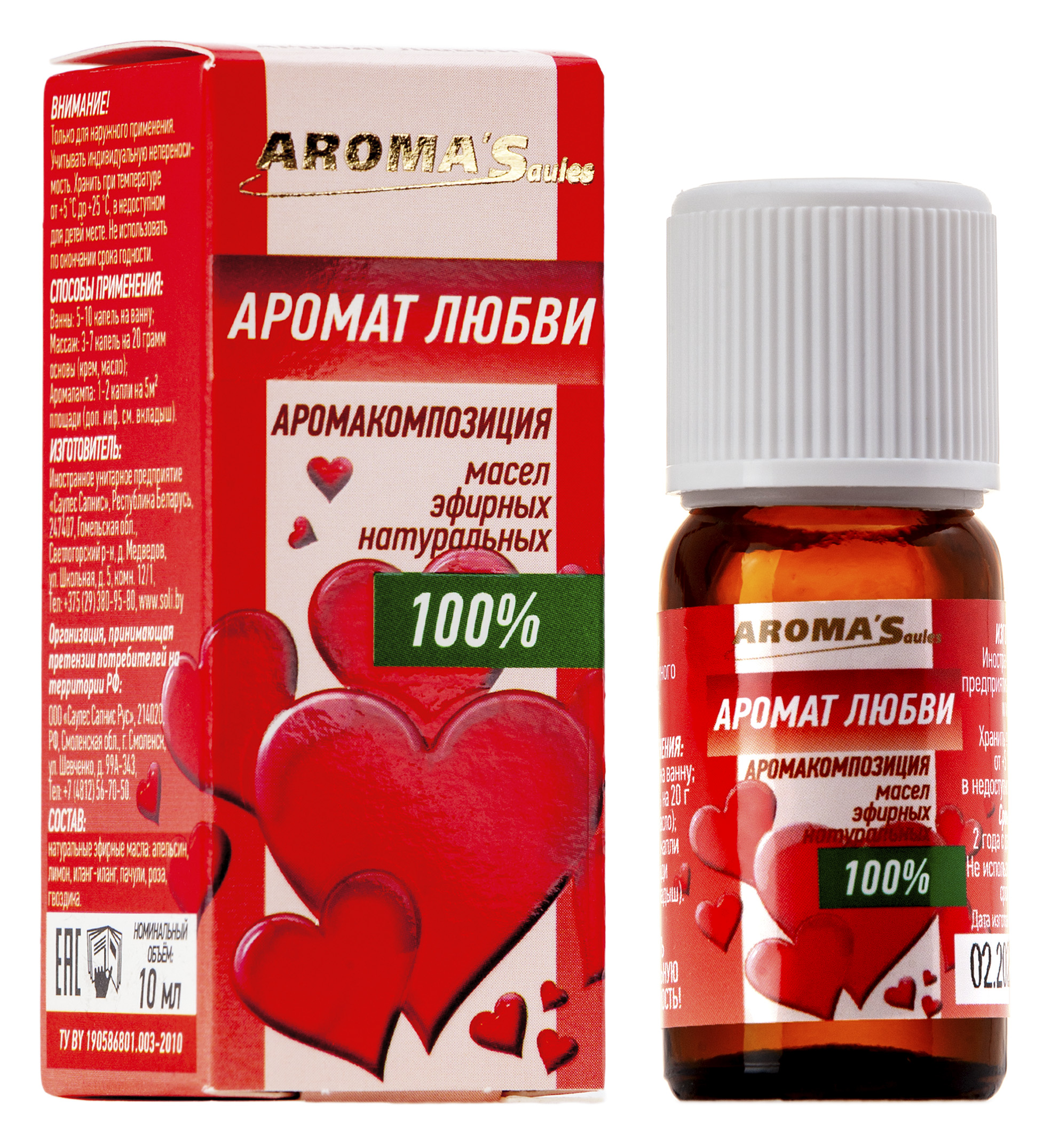 АРОМАТ ЛЮБВИ аромакомпозиция натуральных эфирных масел, 10мл