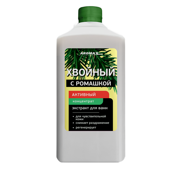 Хвойный экстракт с Ромашкой обладает общеукрепляющими, расслабляющими и антиоксидантными свойствами. Способствует снятию проявлений воспалительных процессов, зуда и шелушения, ускоряет регенерацию и успокаивает кожные покровы. Сочетание хвойного экстракта, эфирного масла ромашки и натурального хлорофиллина положительно воздействует на организм, насыщает полезными микроэлементами и повышает защитные функции кожи.