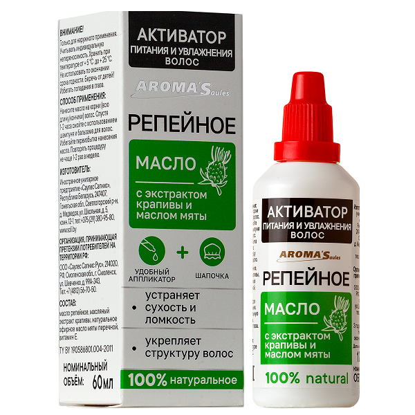 Репейное масло с экстрактом Крапивы и маслом Мяты, 60 мл