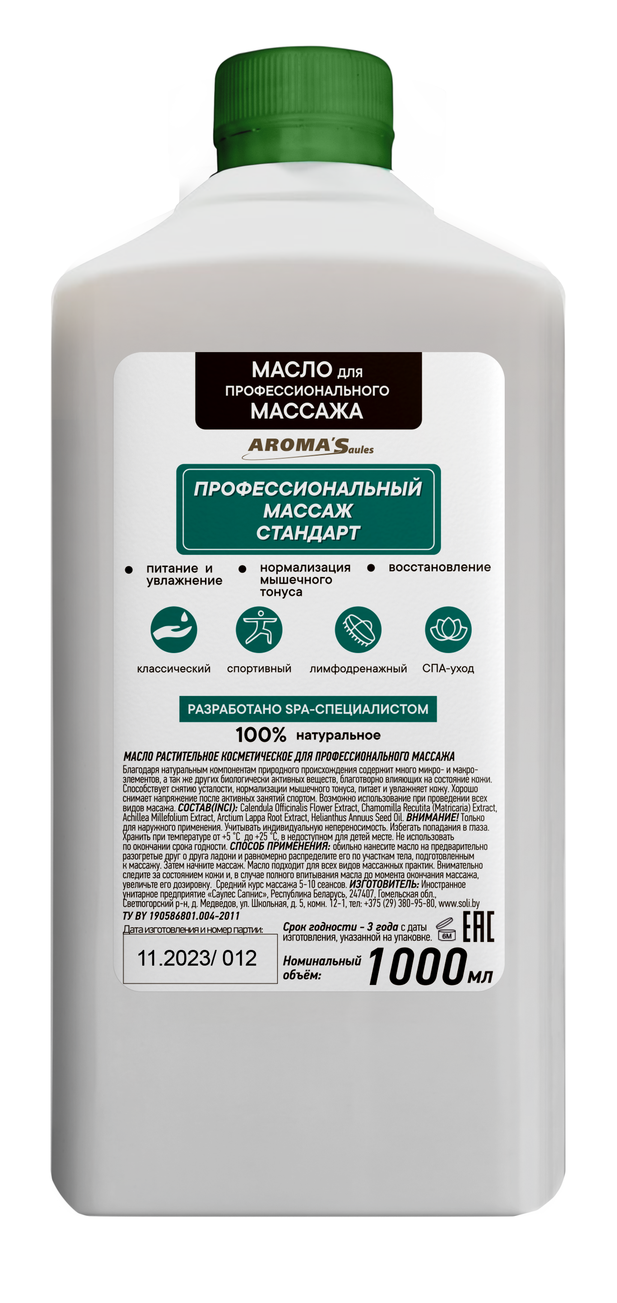 Масло для Профессионального массажа СТАНДАРТ, 1 л